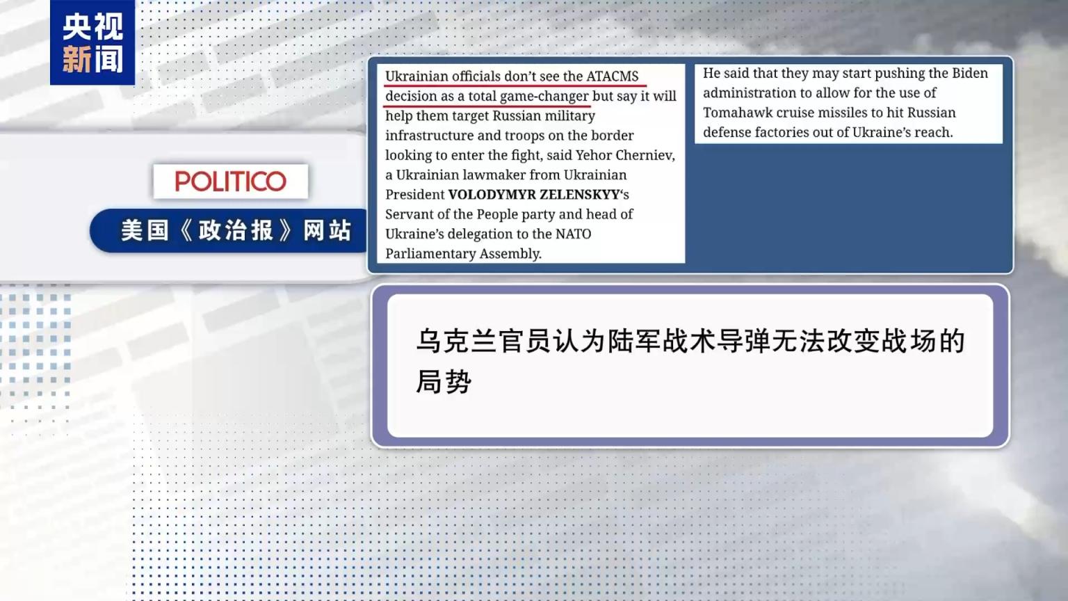 好意思国《政事报》网站报谈称,乌克兰官员觉得陆军计策导弹无法篡改战场的场合,他们但愿好意思国提供愈加巨大的火器。